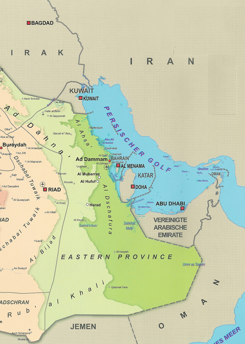 Zu einer Karte über den Persischen Golf und die Anrainerstaaten.